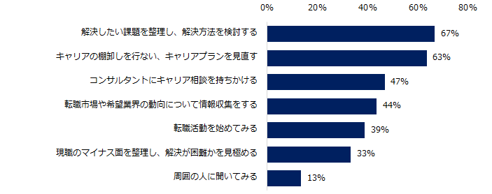 ★ 自身で転職の是非を見極める方法、トップは「課題を整理し、解決方法の検討する」。