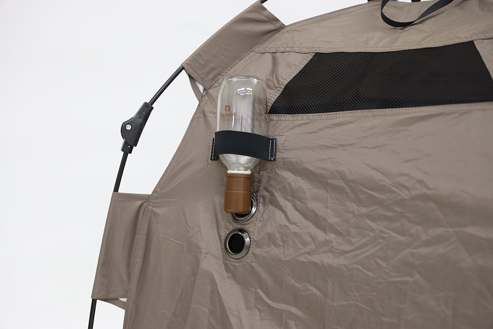 UPF 50+のUVカット加工を施したシルバーコーティング生地を採用しており、紫外線カットと遮熱効果が期待できます。両サイドと背面の窓、出入り口にはメッシュ窓があり、通気性も抜群です。