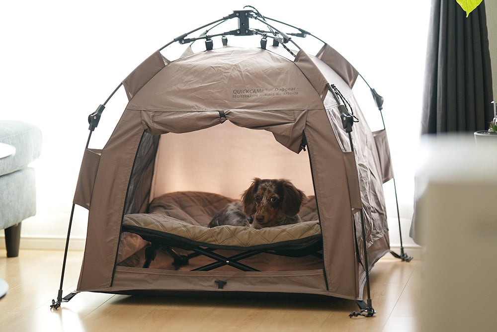 場所を選ばず1分で愛犬の別荘を設営できる!ワンちゃんのための「ドッグテント」新登場