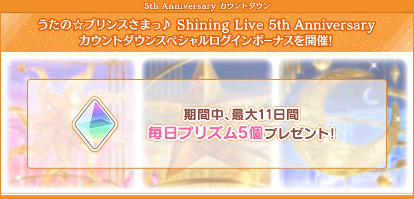 「うたの☆プリンスさまっ♪ Shining Live」もうすぐ5周年!カウントダウンミッションやスペシャルログインボーナスなどを開催!