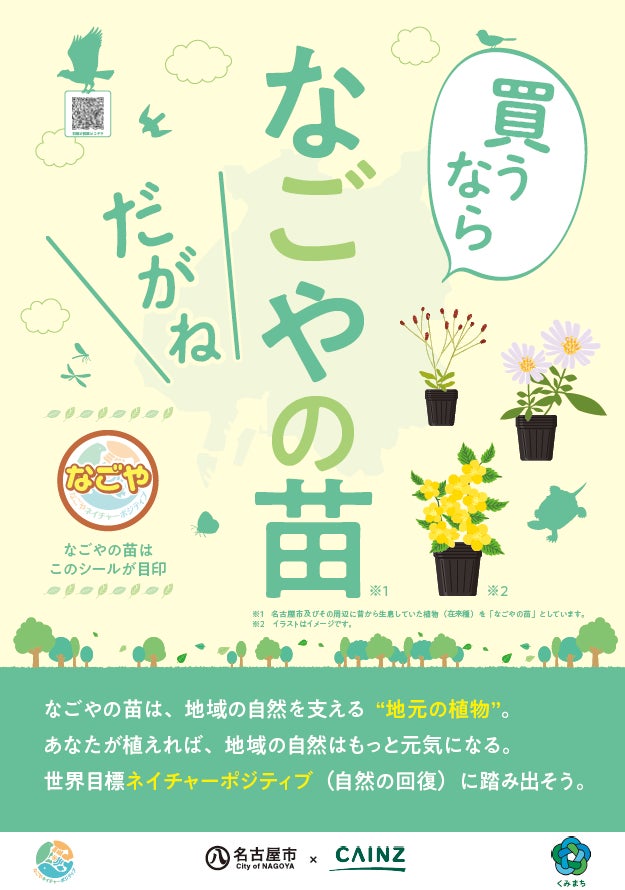 株式会社カインズ(本部:埼玉県本庄市、代表取締役社長 CEO:高家 正行)は、名古屋市と「生物多様性・ネイチャーポジティブに資する事業の連携に関する協定」(以下、本協定)を締結し、在来種「なごやの苗」の販売を市内5店舗で開始することをお知らせします。