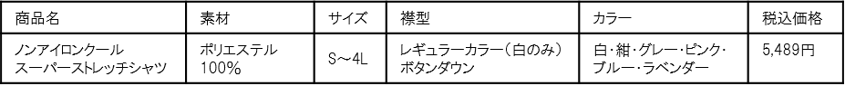 暑い夏でも長袖シャツをスマートに着用できる!「ノンアイロンクールシャツ」を商材数約2倍にして展開!~夏に嬉しい5種類の機能性と「スマートボタン」付き~