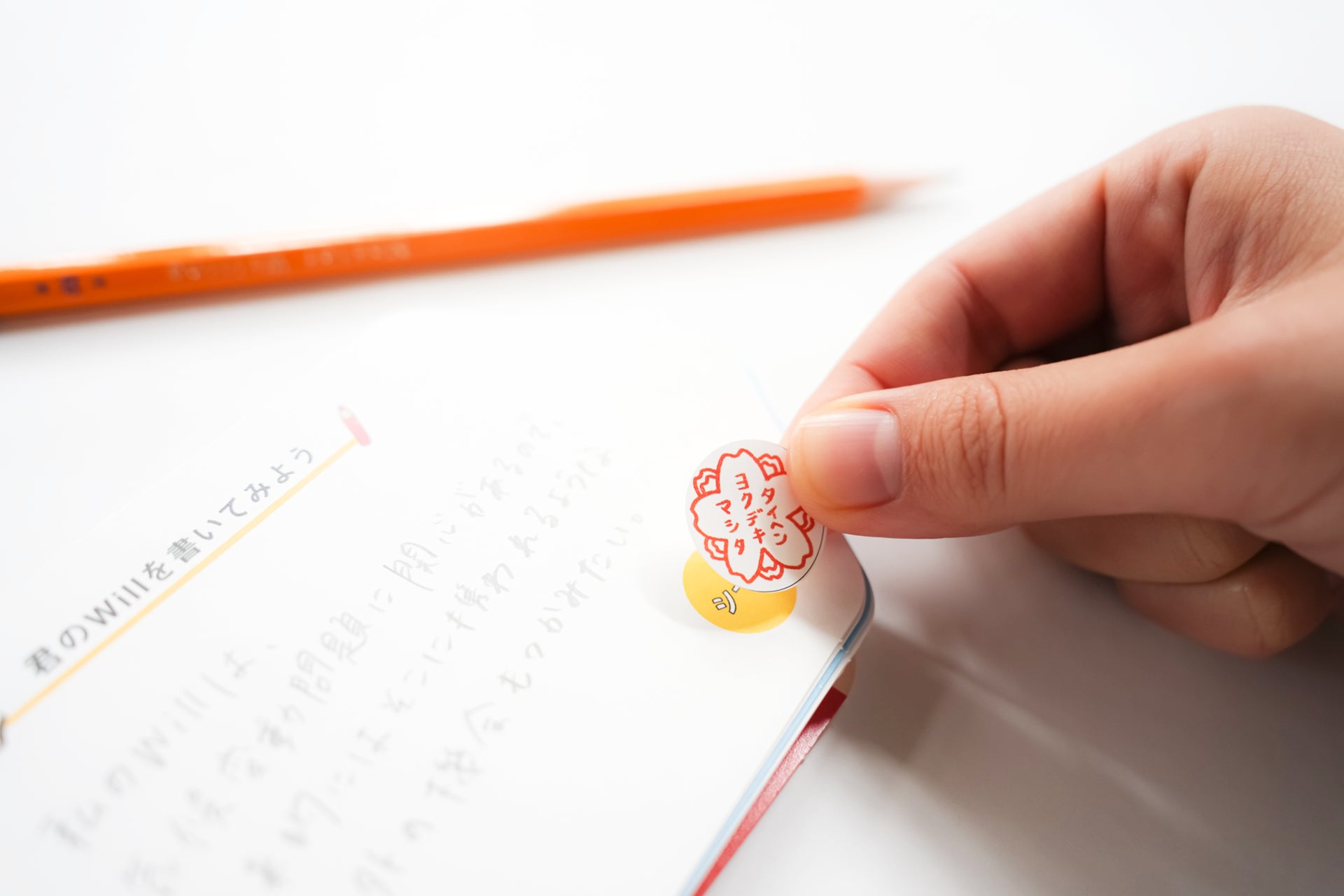 この単語帳型カードには、自分が書いた目標の各カードに貼ることができる「よくできました」シールが付属されています。どんな結果であれ、目標をもって頑張った自分を自分で褒められるツールです。振り返りや反省というと、「あれができなかった」「全然できなかった」と落ち込む社員も多いという声を受けて、自分自身が「できたこと」を褒めながら振り返り、次の一歩を踏み出して欲しいという想いが込められています。