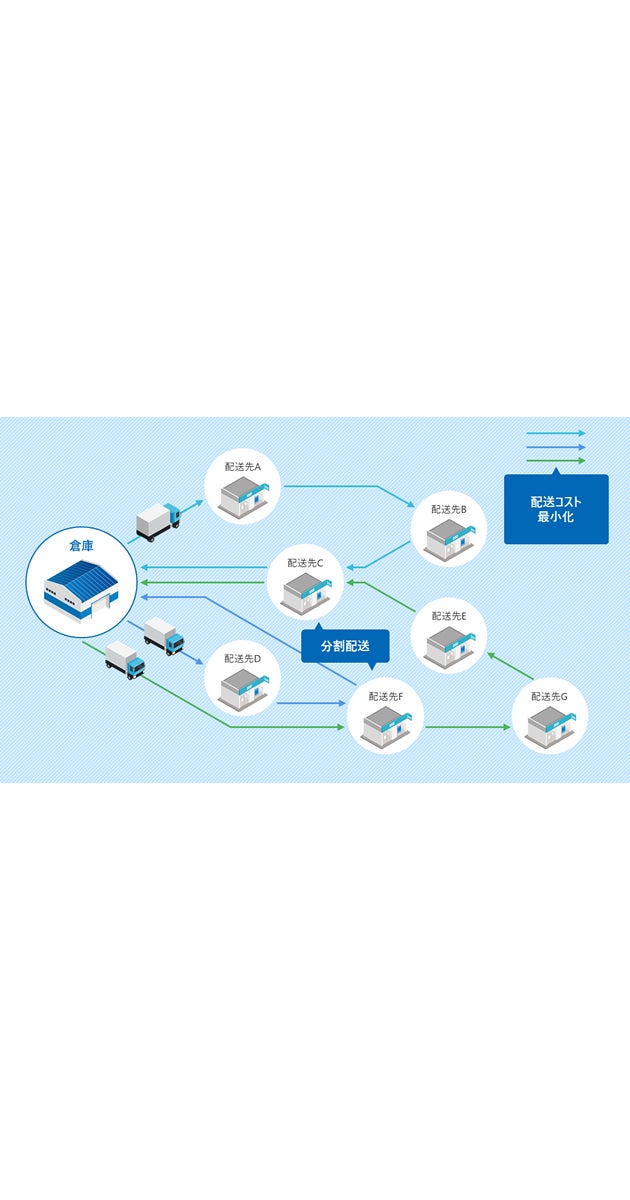 ・効率的な配送手法である「分割配送」を取り入れた配送計画の立案が可能。