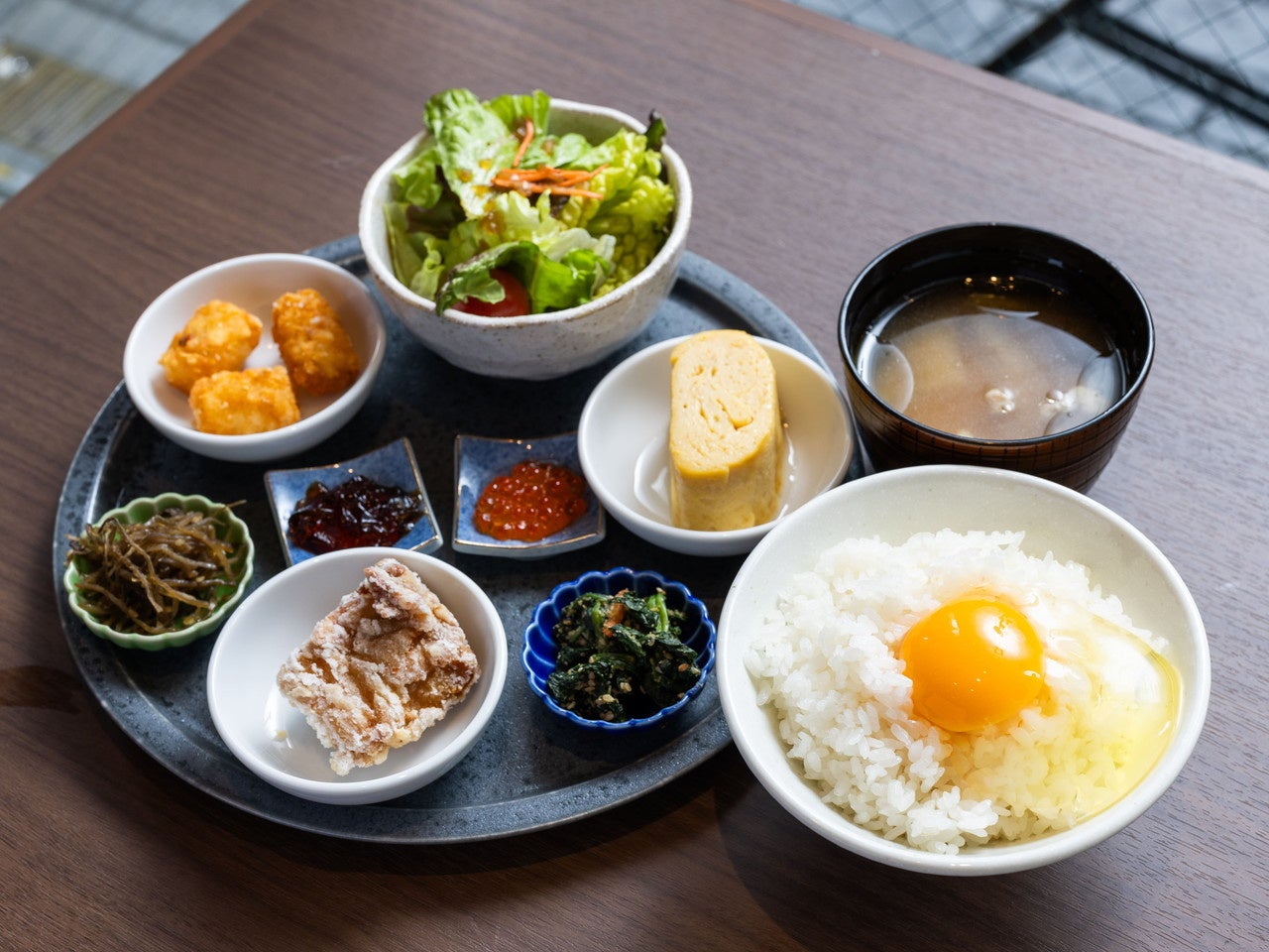 朝食 (1階レストラン) | 【店 舗 名】鳥と卵の専門店 鳥玉 【メニュー】和(新鮮たまごの卵かけご飯)と洋(エッグベネディクト)から選べるプレート 【料 金】前売り1,300円 / 当日1,400円 【時 間】7:00~10:00(L.O. 9:30) |