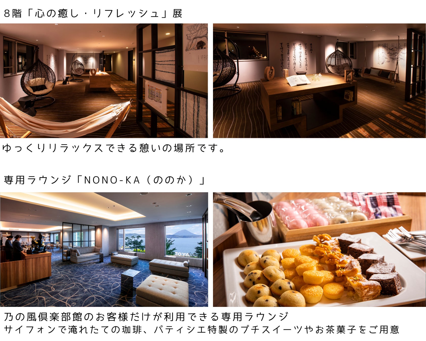 野口観光マネジメント株式会社が運営する、ザ レイクビューTOYA乃の風リゾート(北海道虻田郡洞爺湖町洞爺湖温泉29−1)では、乃の風倶楽部館の滞在がより楽しくなるバラエティに富んだおもてなしや専用のスペースをご用意。