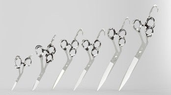 ・挟み角によって変化する切断対象物の切り心地をセレーション刃のピッチを徐変させることで安定化させた縫製刃体セレーション仕様と、ハマグリ刃形状、深めの裏スキで良好な切断能力を実現させた理美容刃体仕様をご用意。