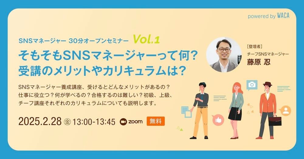 【SNSマネージャー養成講座・オープンセミナー】そもそもSNSマネージャーって何? 受講のメリットやカリキュラムは? 2月28日(金)13時〜13時45分