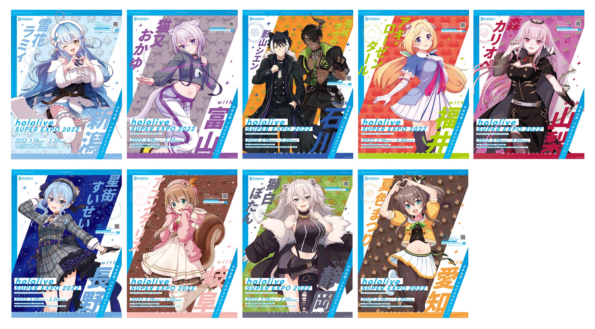一面広告では、《hololive SUPER EXPO 2022》に出演する全タレントが都道府県ごとにそれぞれ登場いたします。ご当地モチーフと共に、各タレントが47都道府県からイベントを盛り上げて参ります。