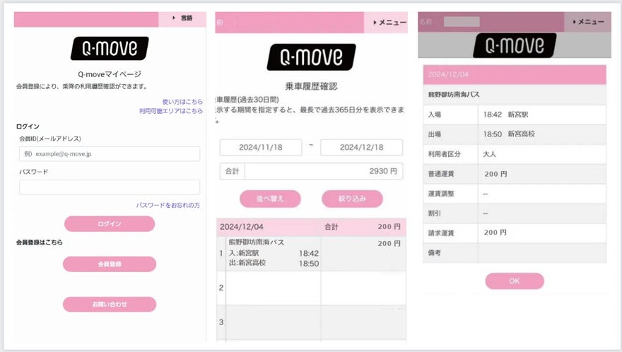 QUADRACのQ-moveサイトにアクセスし、マイページの会員登録手続きが完了しますと確認可能です。