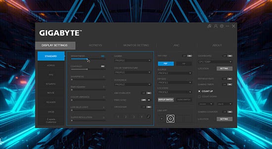 GIGABYTE OSDサイドキックにより、キーボードやマウスを使ってディスプレイの設定を簡単に調整することができます。