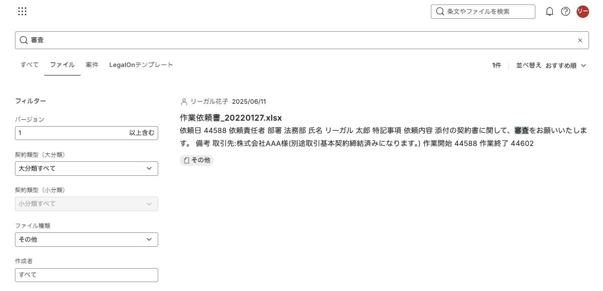 今回「LegalOn Cloud」上のアクセス権のあるすべてのファイルや過去に対応した案件の検索ができる「横断検索機能」がMicrosoft Excelに対応しました。2025年7月にはMicrosoft PowerPointへの対応も予定しています。本アップデートにより、ファイルの内容を対象にした検索が可能になり、目的の過去案件や取引情報を瞬時に見つけ出せるようになります。