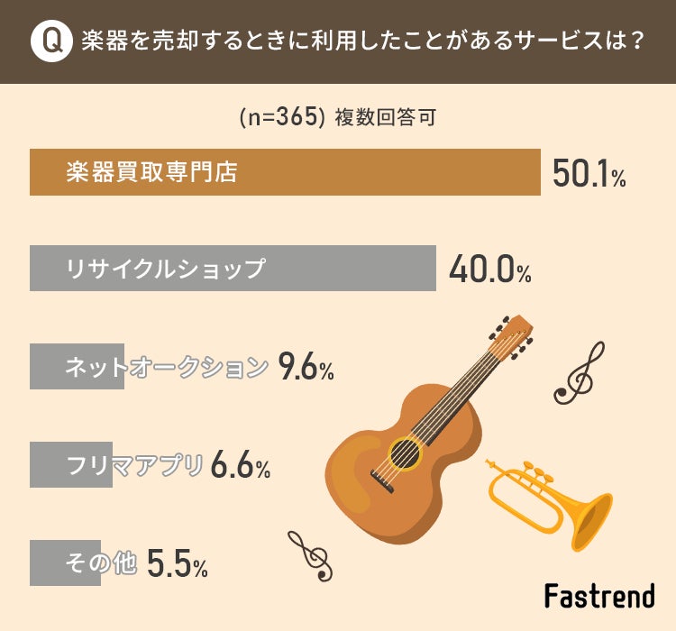 ファストレンド(運営会社:株式会社NEXER)は、「楽器の売却」に関するアンケートを実施し、結果をサイト内にて公開したので紹介します。