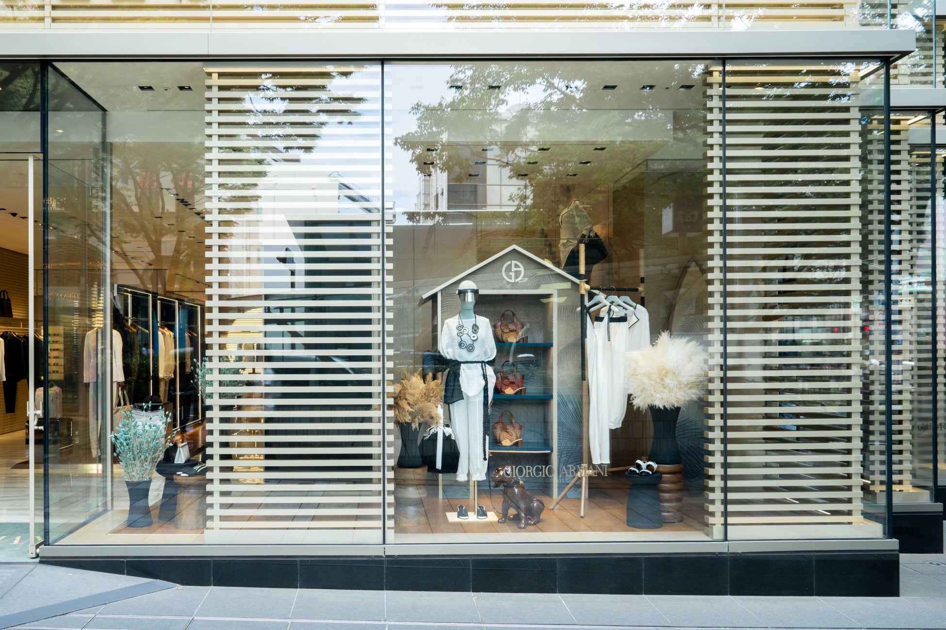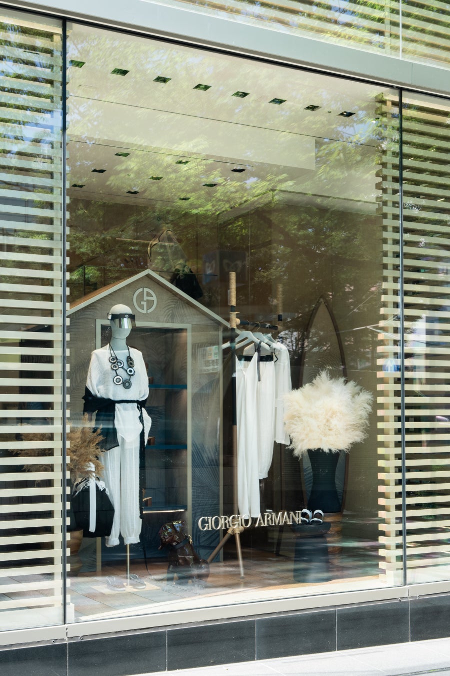 【ジョルジオ アルマーニ】 ジョルジオ アルマーニ 表参道店のウィンドウに“MARE(マーレ)” コレクションの夏のエレガンス