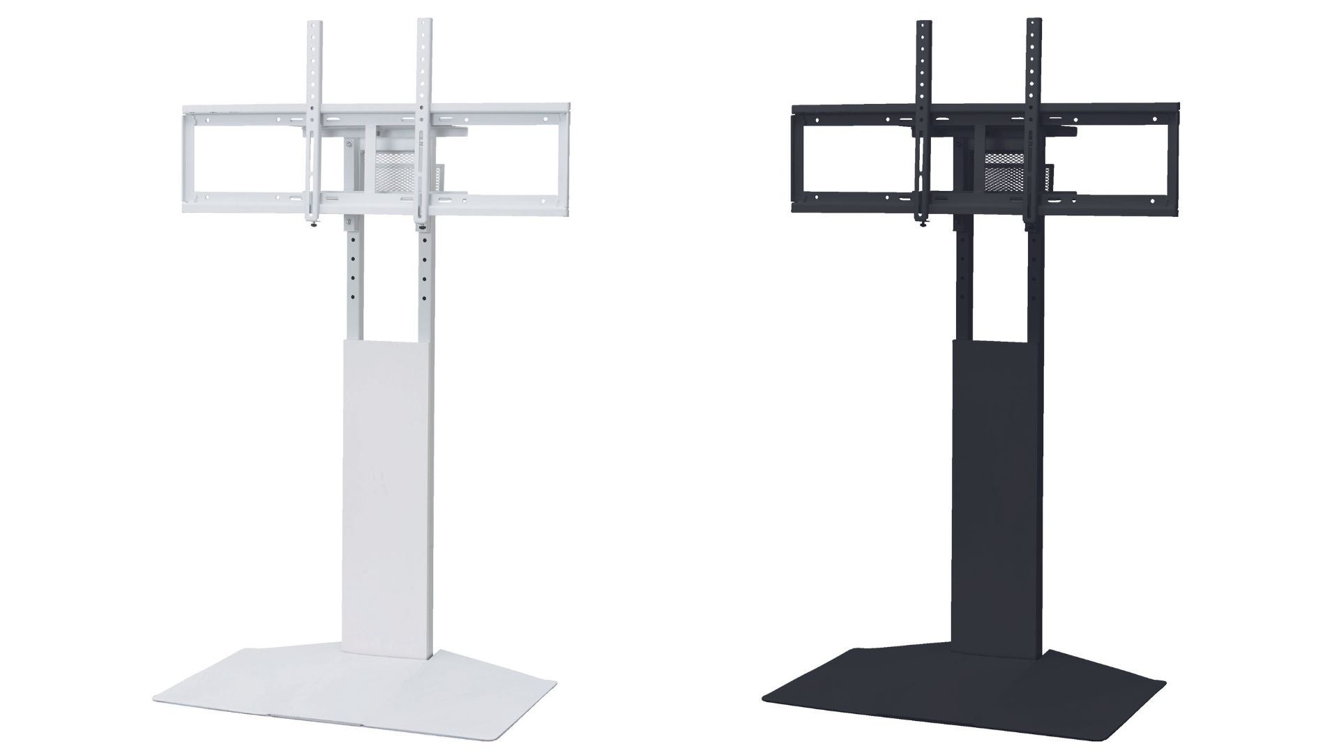 お部屋のレイアウトや視聴環境に合わせて高さを調節したり、見やすい角度にスイングも可能です。さらに85インチのテレビを最大の高さに取り付けても、震度7の耐震実験をクリアした安心設計となっています。カラーはどんなお部屋にも合わせやすいホワイトとブラックの2色をご用意しました。テレビスタンドですっきりと快適な暮らしをはじめてみませんか。