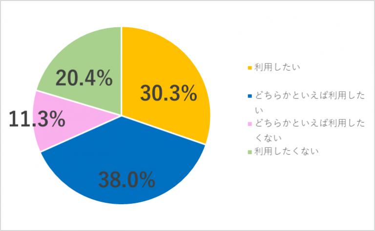 今後GoToEatを利用したいかという質問に対しては、「どちらかといえば利用したい」と回答した方が38.0%で最も多くなりました。次いで、「利用したい」と回答した方が30.3%でした。「利用したい」と「どちらかといえば利用したい」合わせて、半数以上がGo To Eatを利用してみたいという結果になりました。
