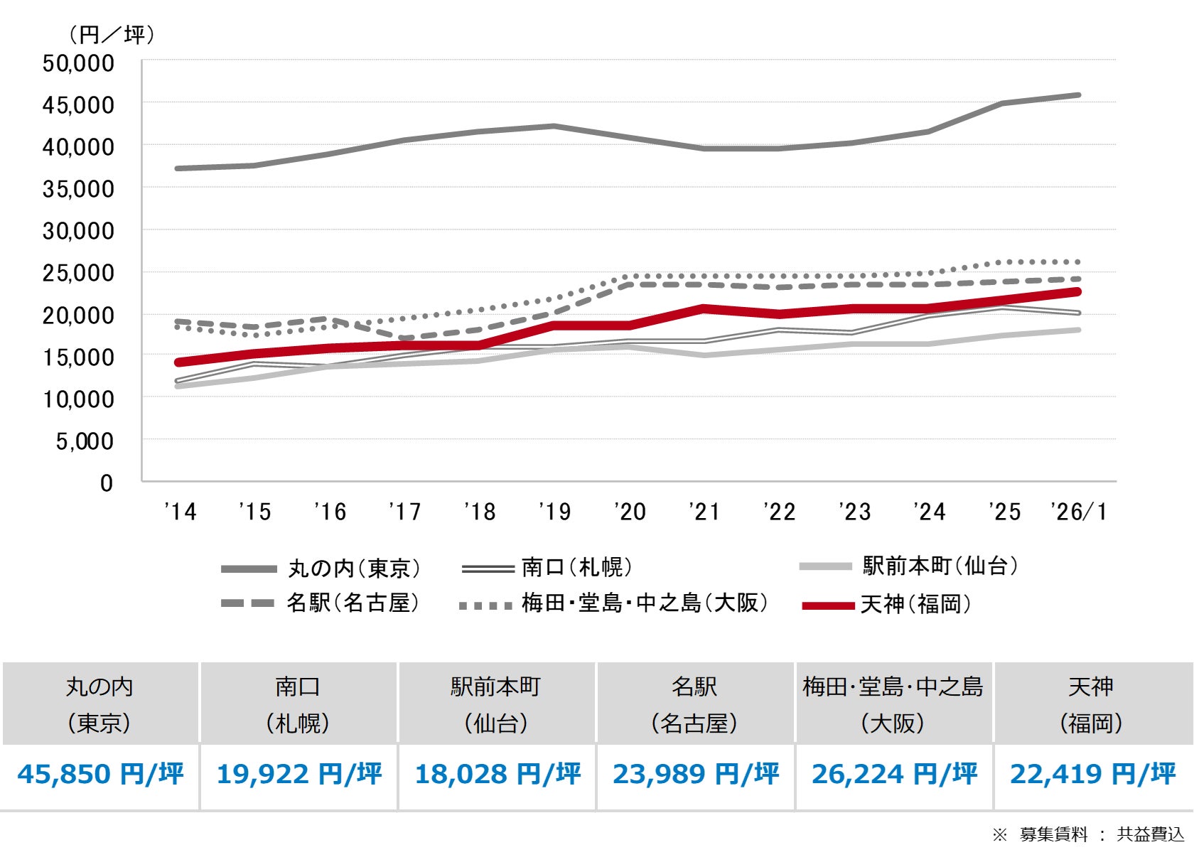 <募集賃料の推移(6大都市 大規模ビル・主要駅前地区)>