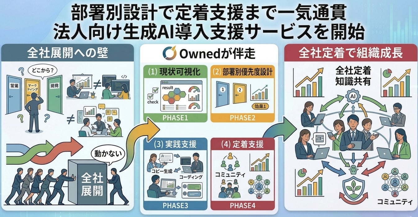 Owned株式会社、部署別設計で定着支援まで行う法人向けAI導入支援サービスを開始