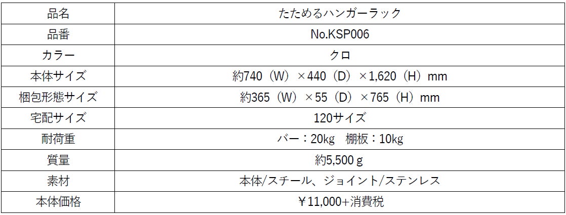 製品名:「たためるハンガーラック」