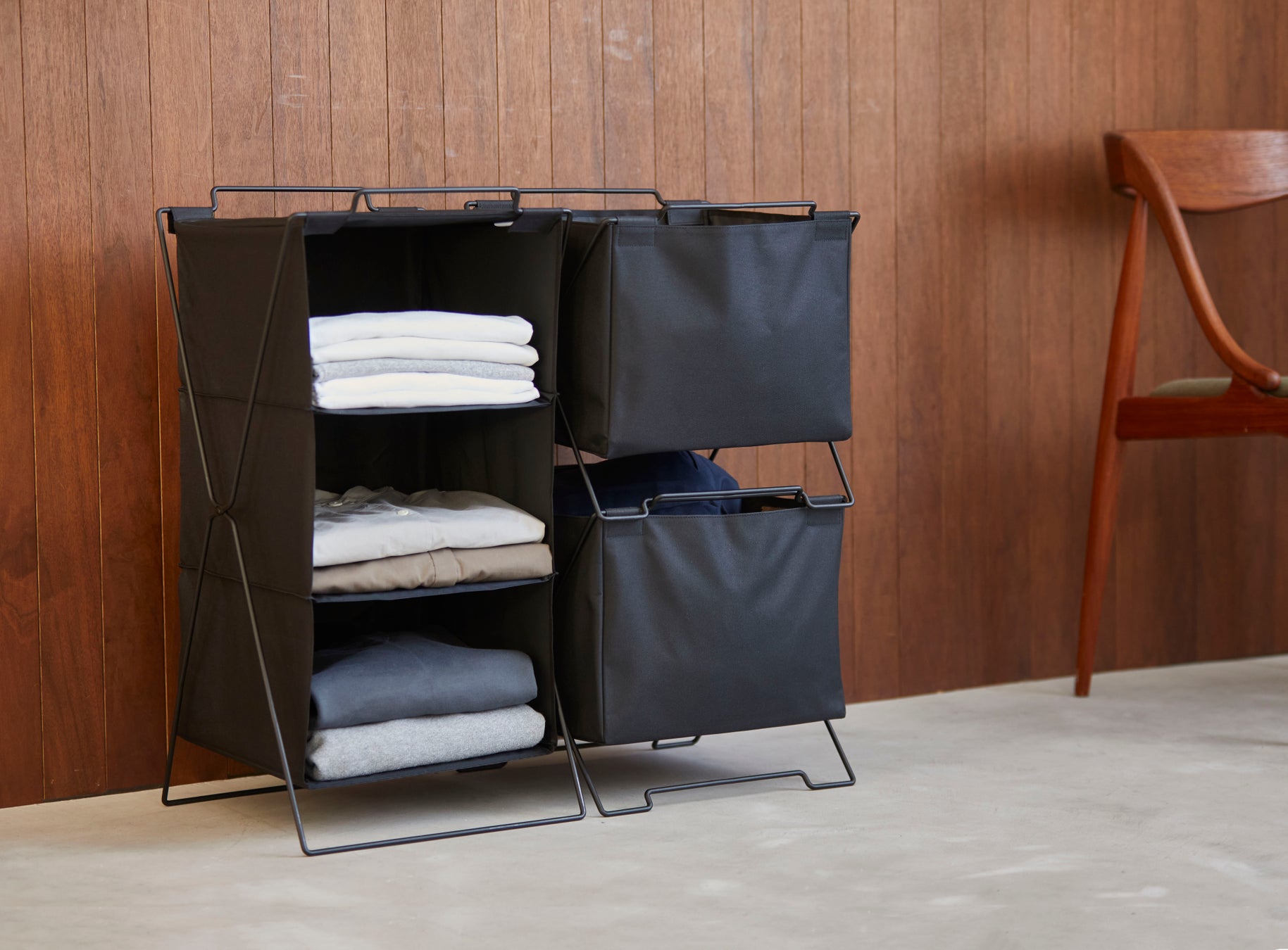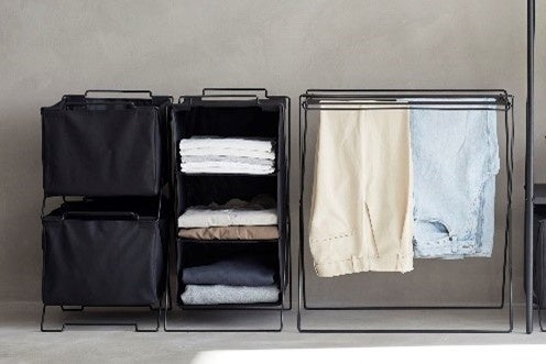 新発売となる3製品とも、未使用時には折りたたんで収納できるため、スペースの限られた場所での使用や、必要なシーンに合わせて使用することができます。また、インテリアになじみやすいシンプルなデザインに仕上げています。同じ『SPOT』シリーズの「スタッキングバスケット」などと並べて使うことで、統一感を演出でき、インテリアから浮きがちな衣類収納も整って見えることを目指しました。