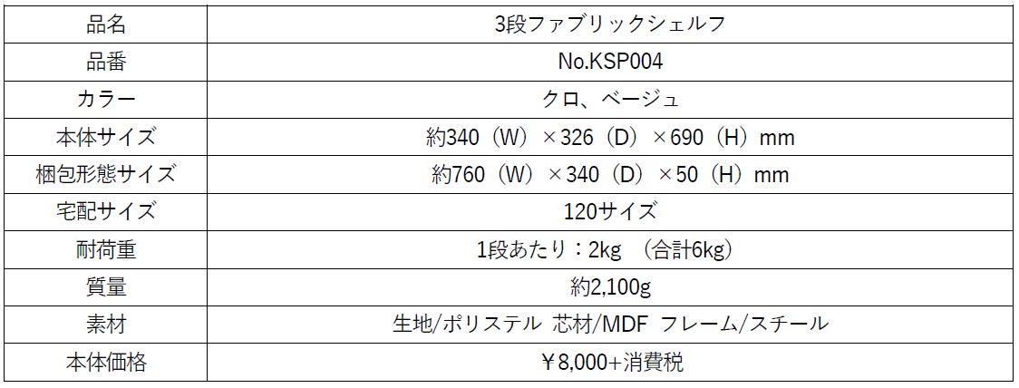 製品名:「3段ファブリックシェルフ」