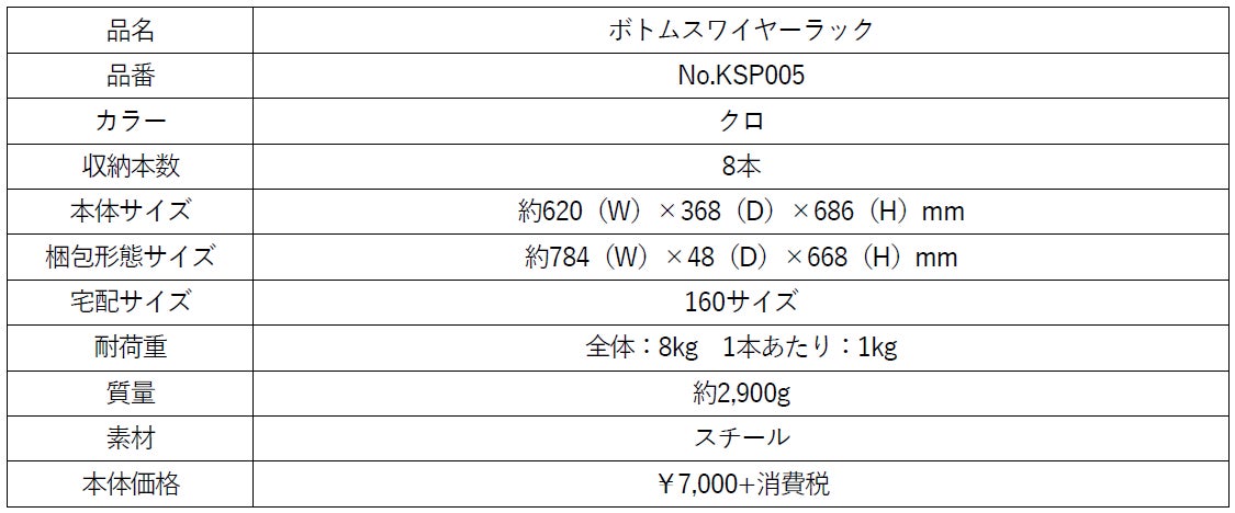 製品名:「ボトムスワイヤーラック」