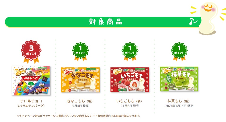 パッケージには今年発売20周年を迎える「きなこもち」の記念ロゴ入り。
