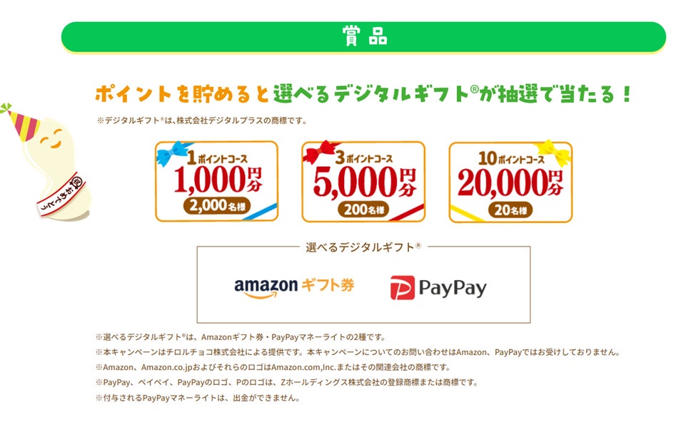 対象商品を購入したレシートを撮影して、チロルチョコ LINE公式アカウントから応募!抽選で総勢2,220名様に最大20,000円のギフト券をプレゼント。