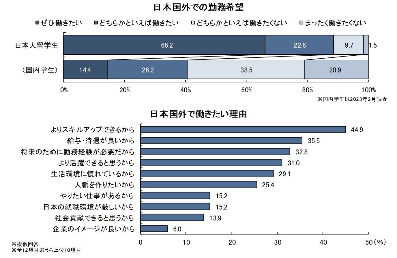 図表1. 海外での勤務希望と海外で働きたい理由