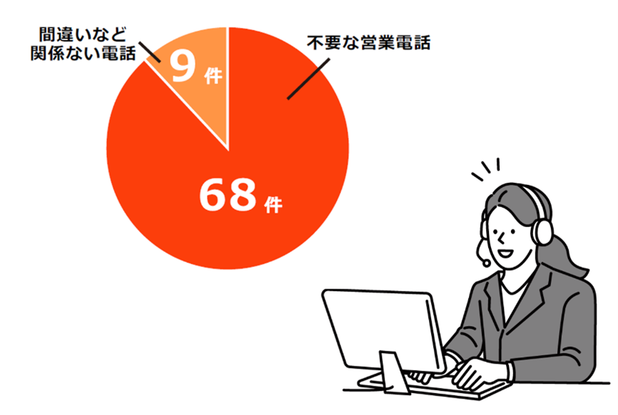 例えば、500名ほどの企業の場合では、1日あたり平均68件の営業電話、9件の間違い電話 があることが判明しています。