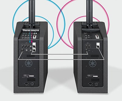 『STAGEPAS 1K mkII』を2台、または『STAGEPAS 1K mkII』と『DXL1K』をリンクすることで、より広いカバーエリアが必要な会場にも対応します。各リンクでは、ステレオ再生とモノラル再生の両方に対応し、モノラル再生時にはリンクした2台*1の入力を使用することができます。また、『DXL1K』をミキサー単体と組み合わせて使用する際は、リンク*2させることで、最大4台のマルチスピーカー接続が可能です。