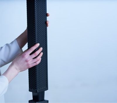 スピーカーケーブルやスピーカースタンドは必要なく、ラインアレイスピーカーをサブウーファーのキャビネット天面に取り付けるだけで、基本的なセットアップが完了します。必要に応じて、2つのスペーサーを使って高さを調整することも可能です。