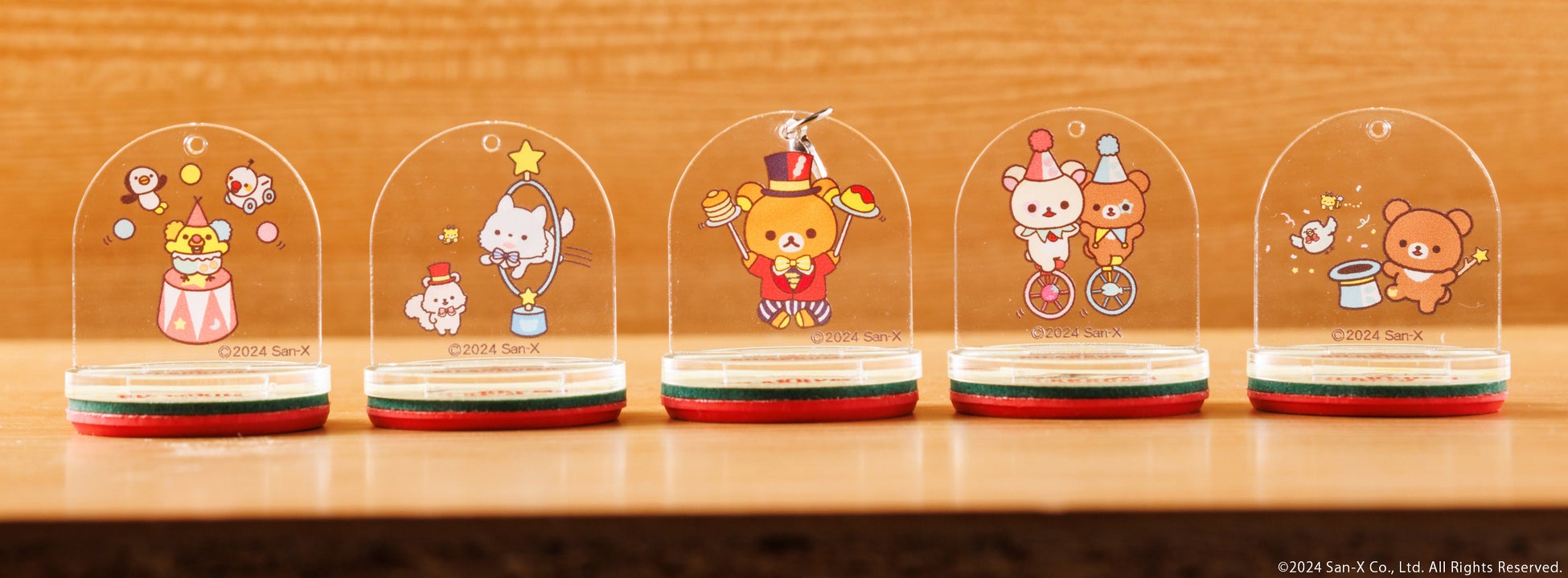 飾って、押して、身につける!?サーカス団になりきったリラックマたちにほっこり癒される新感覚グッズ「リラックマごゆるりはんこ アクリルスタンドスタンプ(リラックマサーカス限定デザイン)」。