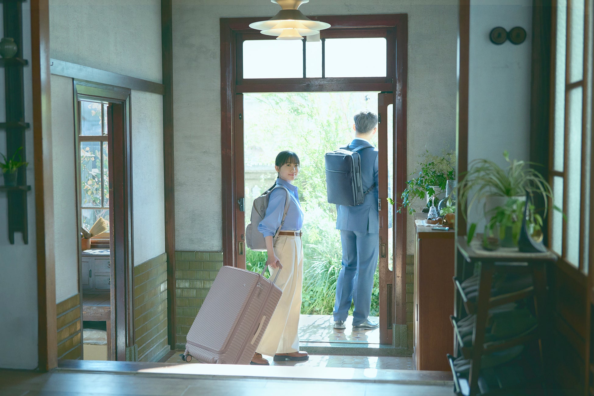 舞台は“出発”を象徴する玄関。旅行に出かける朝、荷造りを仕上げる芦田愛菜さん。