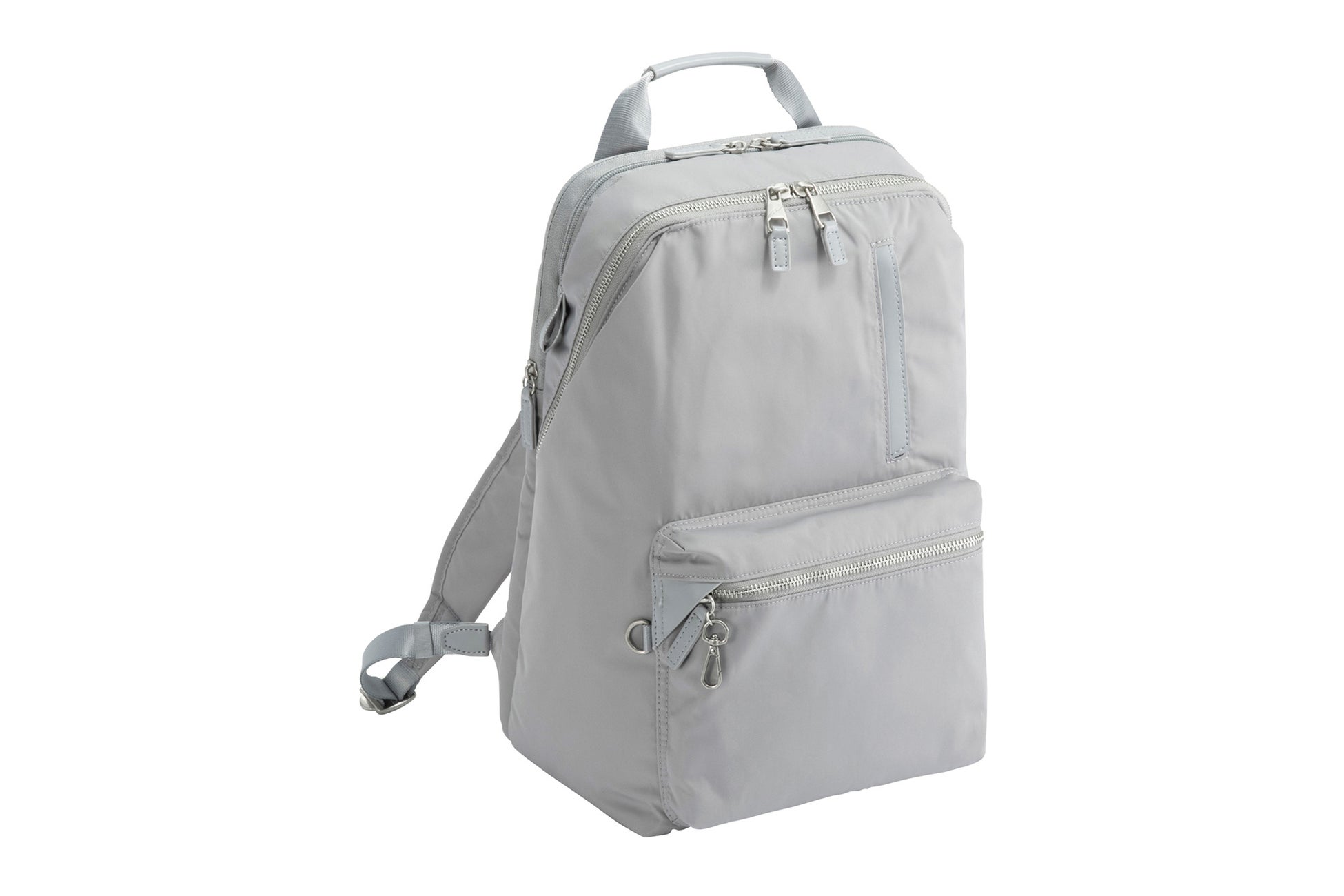 オンからオフまで使える、カジュアルなデザインのビジネスリュックです。頻繁に取り出す財布や携帯電話を収納できる同素材のポシェットが付属します。