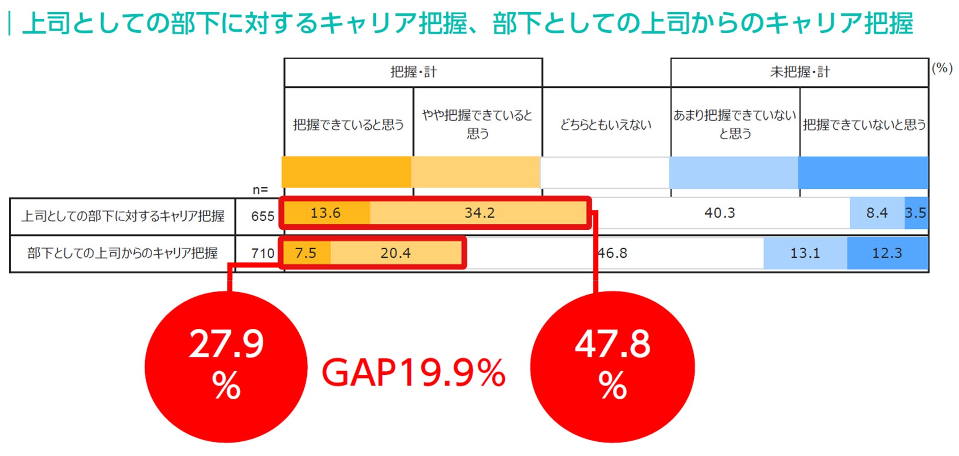 上司として部下に対するキャリア把握ができていると思っている人は、47.8%。一方、部下とし