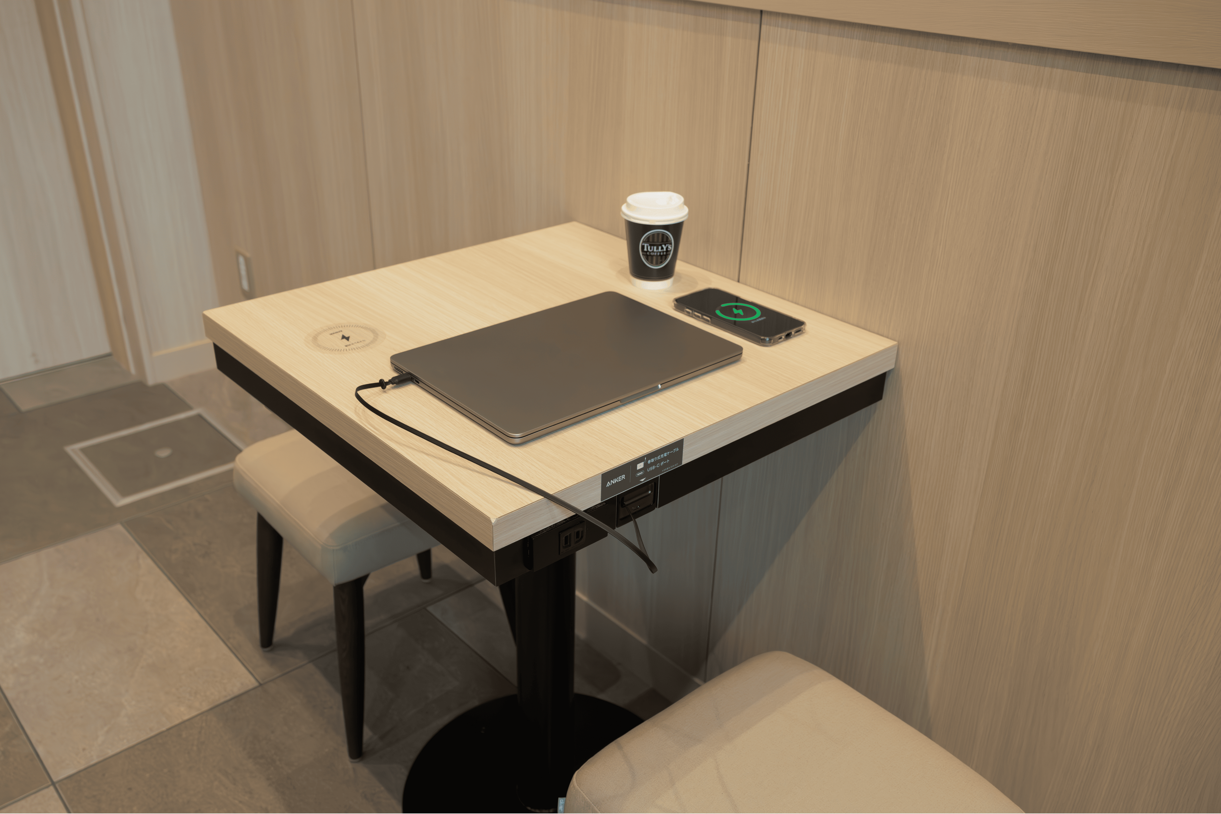 タリーズコーヒーの店内客席に、急速充電ボックスを順次設置いたします(※)。最大100Wで出力可能な巻取り式のAnkerのUSB-CケーブルとACコンセントを備え、仕事の合間の休憩時間や待ち合わせまでのわずかな時間でもスマートフォンやノートPCを急速充電することができます。2026年3月18日(水)までに関東8店舗で実証実験として設置しており、本日以降、全国約80店舗に順次拡大して参ります。