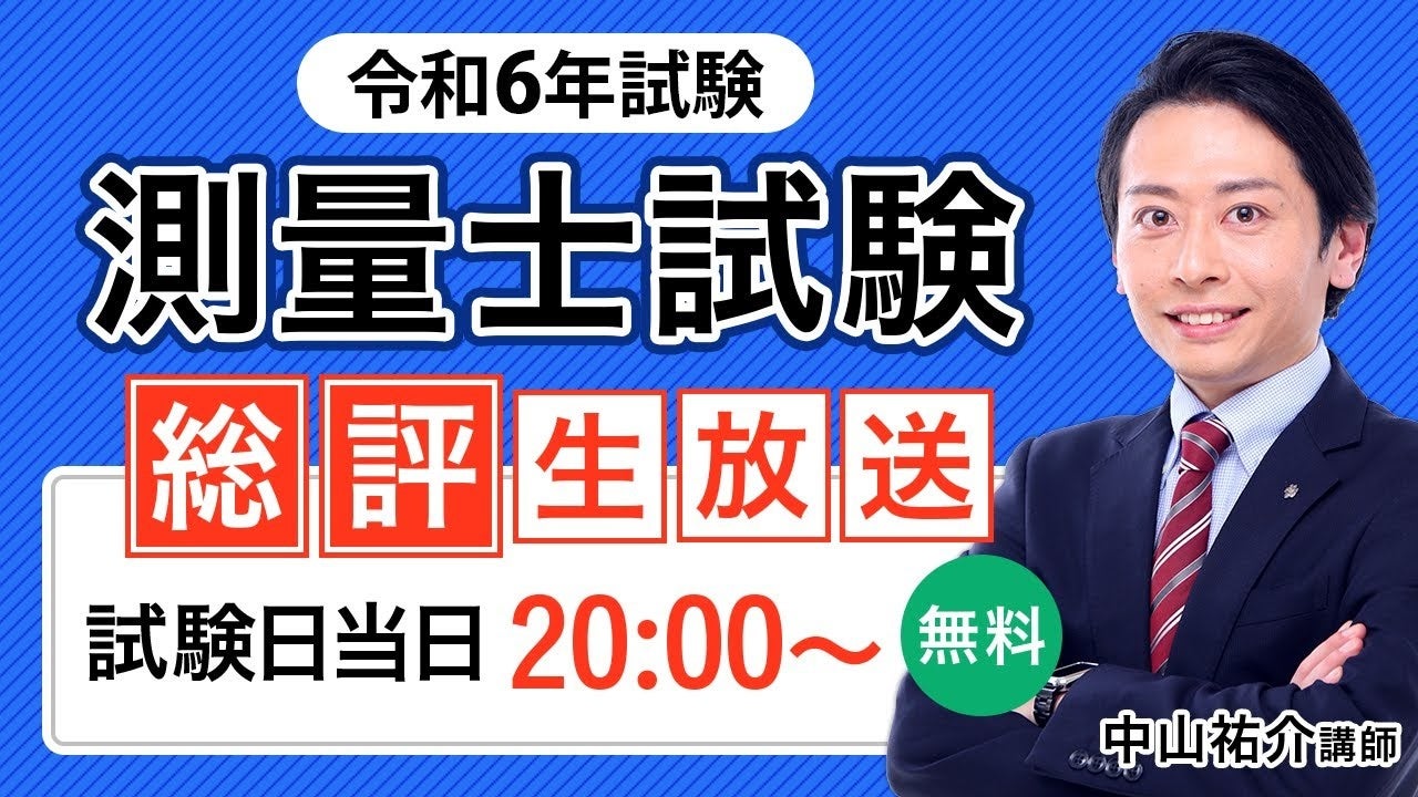 アガルートアカデミーは2024年(令和6年)測量士試験当日に「解答速報」と総評生放送を会員登録不要で無料公開いたします。ぜひ、試験の振り返りにお役立てくださいませ。