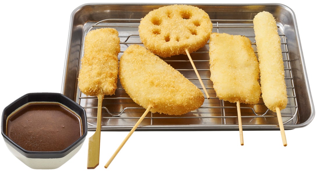 (串カツ:チーズ、串カツ豚、イカ、レンコン、玉ネギ)
