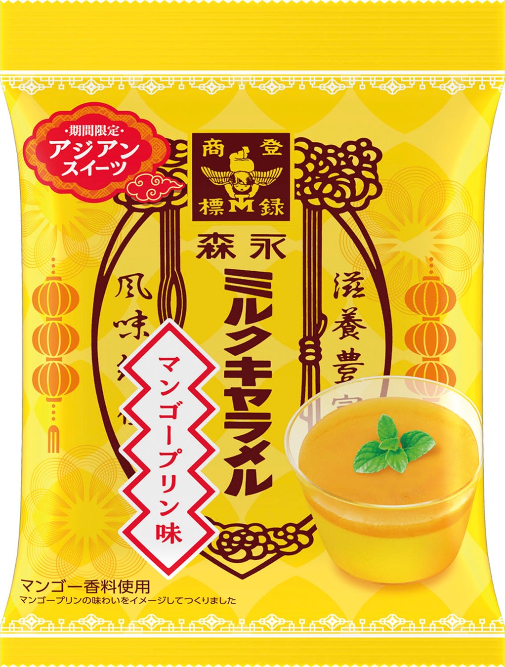 アジアンスイーツの定番であるマンゴープリンの味わいをキャラメルで再現した、マンゴー感とミルクのコクを楽しめるキャラメル。
