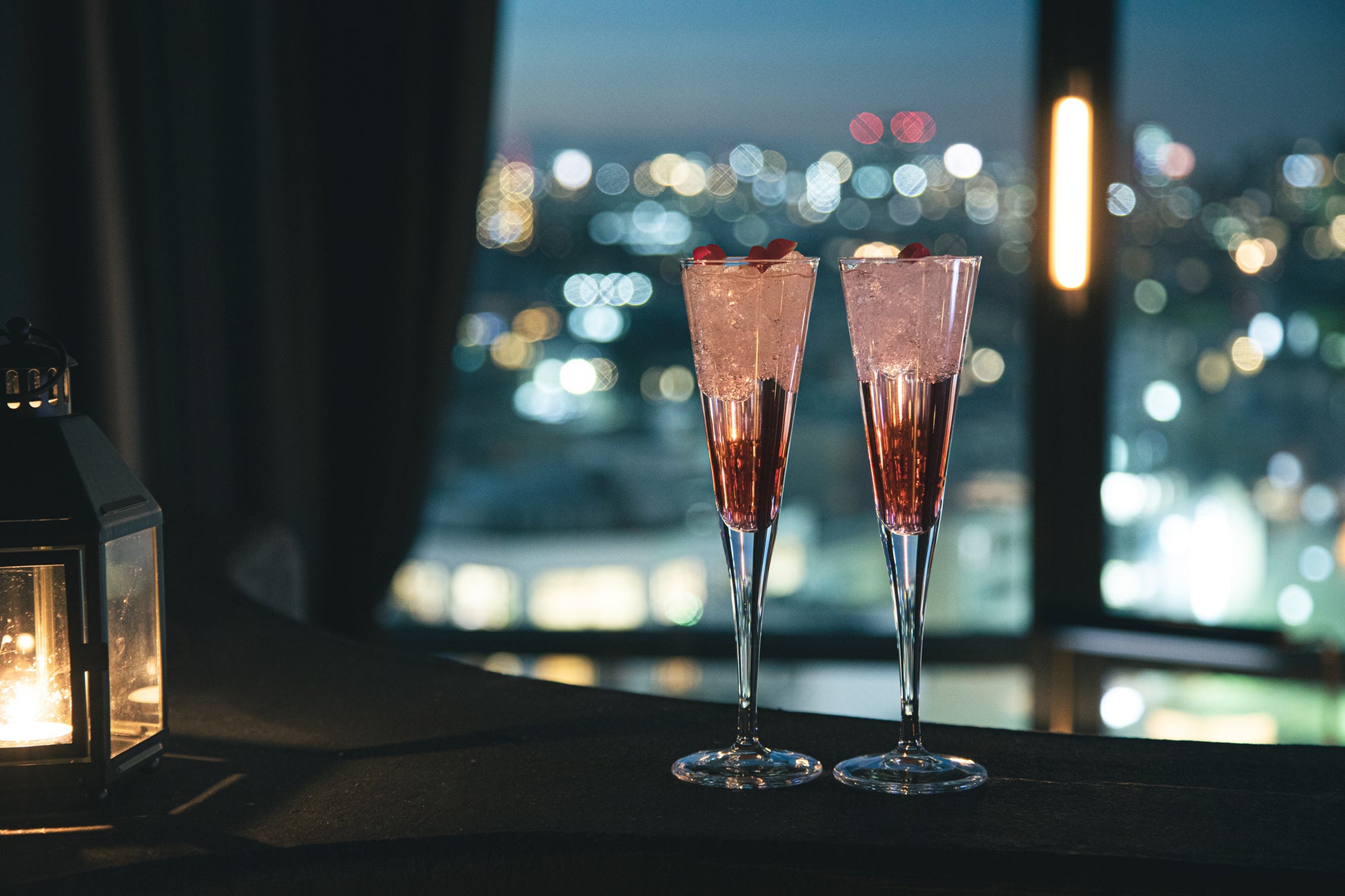 どこからでも渋谷のパノラマ夜景を望め、二人だけの特別な時間を楽しめる最上階スカイレストラン&スカイバー。