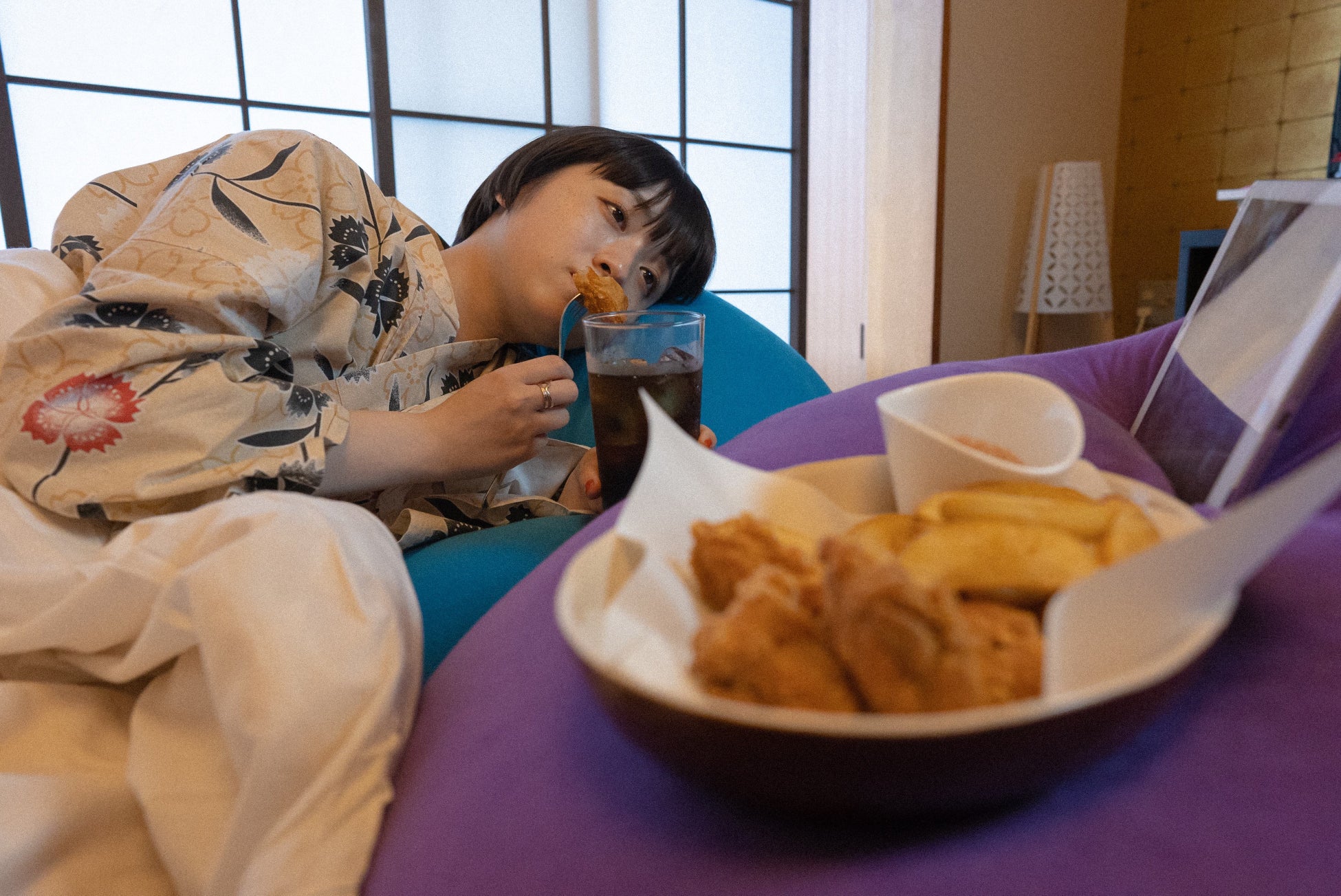 「頑張る自分をとことん愛する」をコンセプトに、温泉とビールでダラダラと過ごす1日を提供する宿泊プラン。滞在中は文豪達も愛した源泉かけ流しの温泉を満喫しつつ、ビールと唐揚げ/ポテトが食べ放題。昨年リリースしたところ、大好評で多くのお客さまにご利用いただいたため、今年はさらにパワーアップビールだけではなく、ハイボールやソフトドリンクもお楽しみいただけるようになりました。また、最高にリラックスできるジャージも貸し出し可能です。新しくなった御自愛パックをぜひ体験してみてください。