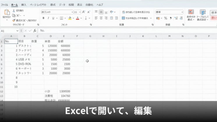 3. 画面上の「Excelを開く」をクリックすると、そのままExcelが開き、読み取った範囲の表がExcelで再現されます。