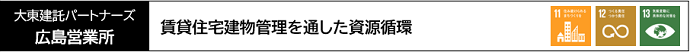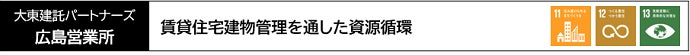 広島営業所は、当社グループが管理する賃貸住宅敷地内に、入居者様の不要品を回収するためのコンテナボックスを設置。回収した不用品を分別し、寄付団体や無料譲渡会へ提供することで、広島市の掲げる「ゼロエミッションシティ広島」への貢献を目指しました。