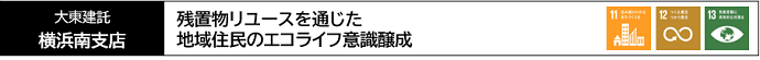 期間中、廃棄物として処理される予定だった多くの残置物が無料で引き取られただけでなく、賃貸建物オーナー様と地域から集まった段ボール10箱分の不要品も販売し、リユースの促進と廃棄物処分量低減への貢献に繋げることができました。さらに、本イベントをきっかけに土地活用に関するご相談をいただいたり、地元企業様との新たな関係を構築するなど、横浜南支店が横浜市の地場企業として持続的に事業を継続するためのコミュニケーション機会の創出にも繋がりました。
