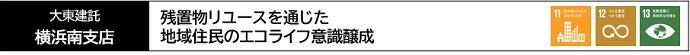 横浜南支店は、建物を解体するオーナー様から寄せられた「残置物は処分費用も掛かるし、まだ使える物も多くてもったいない」という声に着目し、今回のSDGsアワードへの挑戦を決めました。施策検討にあたり、支店がある横浜市の課題を調査する中で、残置物のリユースを促すことは「ヨコハマ3R夢(スリム)プラン(横浜市一般廃棄物処理計画)」で示されている「市民・事業者・行政の協働によるリデュースの推進」や、SDGs「11.つくる責任 つかう責任」への貢献にも繋がると確信。解体予定の建物に残された家具や家電、建具などのリユースを促しつつ、オーナー様の処分費用削減にも繋がるフリーマーケットの企画へと至りました。またフリーマーケットの開催に伴い、賃貸建物オーナー様や支店近隣の商店街などへも出店を呼びかけることで、横浜市の目指す「市民と事業者の協働による3R」の達成を目指しました。