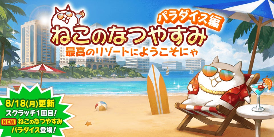 「にゃんこ大戦争」の夏限定イベント「ねこのなつやすみ パラダイス編」開催のお知らせ