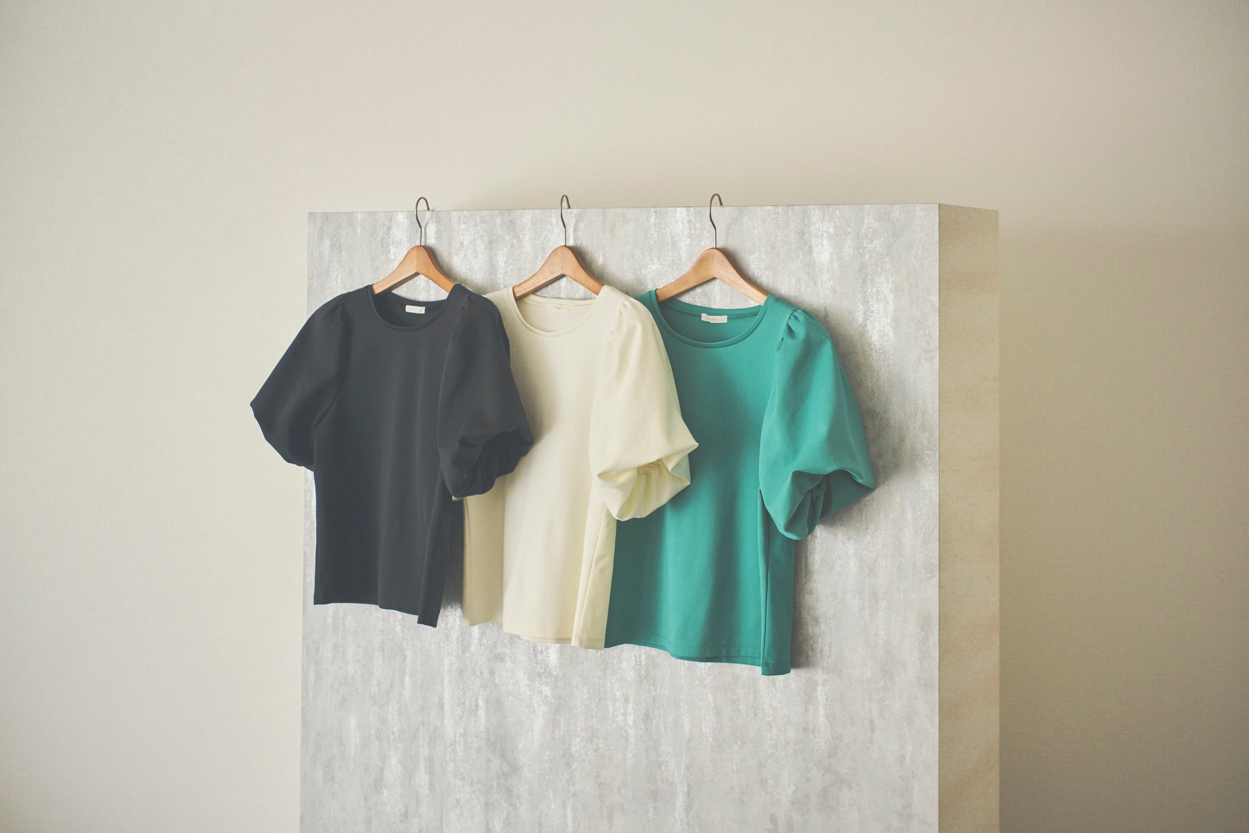 今季も引き続きトレンドのボリュームスリーブが華やかなアクセントになるカットソーです。
