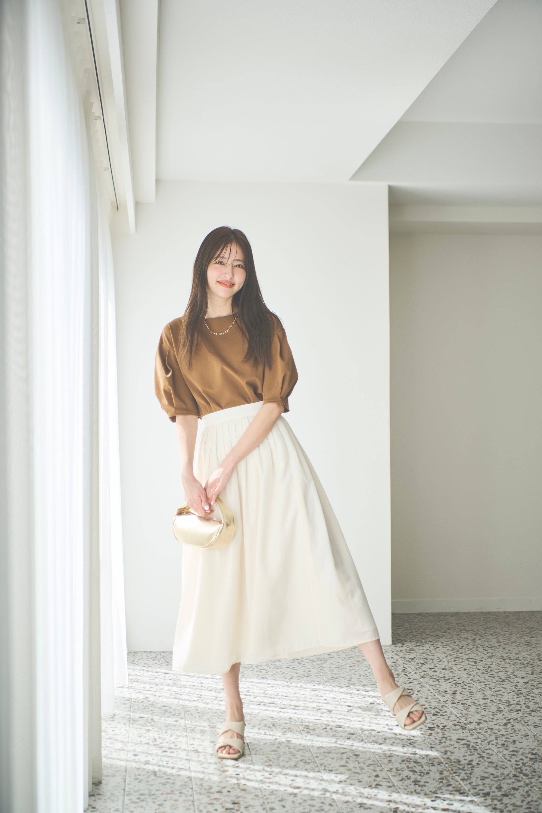 シアースリーブ×タックスカートでメリハリあるシルエットに