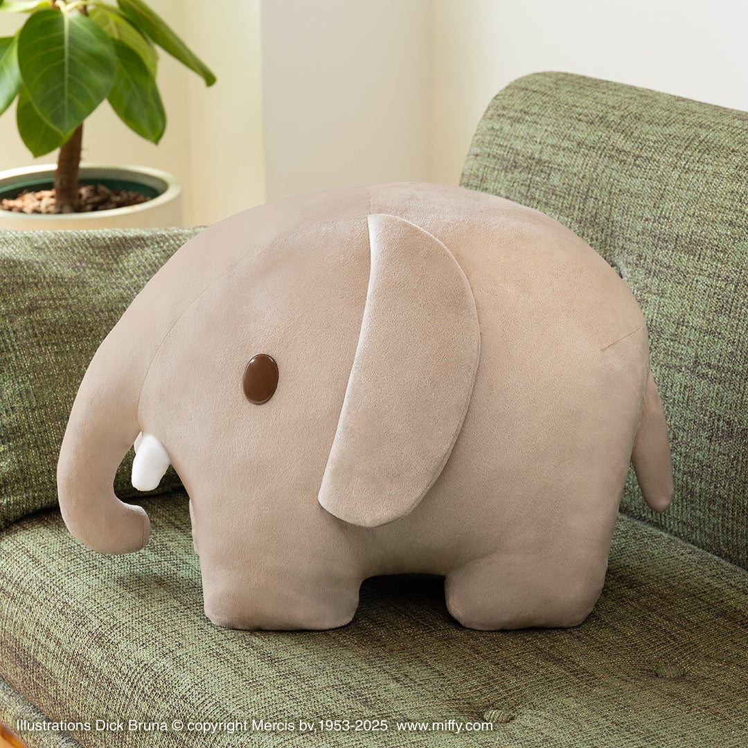 A賞は、約48cmの特大サイズでふんわりとした触り心地が魅力の「ゾウ」のぬいぐるみです。ギンガムチェックのソーイングラベルが付いており、お部屋に飾るだけで存在感が感じられるとともに、癒しの空間を演出します。